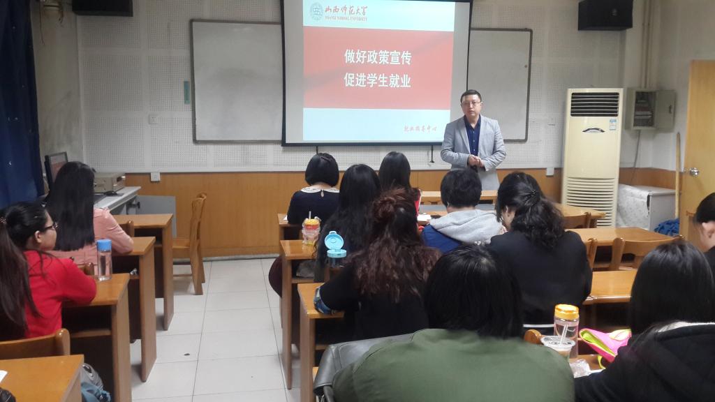 范书记首先对李克强总理在全国两会期间所作《政府工作报告》中有关就业创业工作部署进行了阐述,然后强调了在学校即将举办的招聘会期间的注意事项。在就业政策专题中,他主要从毕业生就业分类、就业派遣工作的程序及相关政策、户口迁移和档案转递、人事代理的相关规定、求职时的注意事项、应该关注的相关政策六个方面做了深入分析。期间,他用生动的语言、鲜明的事例向同学们讲解就业知识,还分享了自己的就业经历。