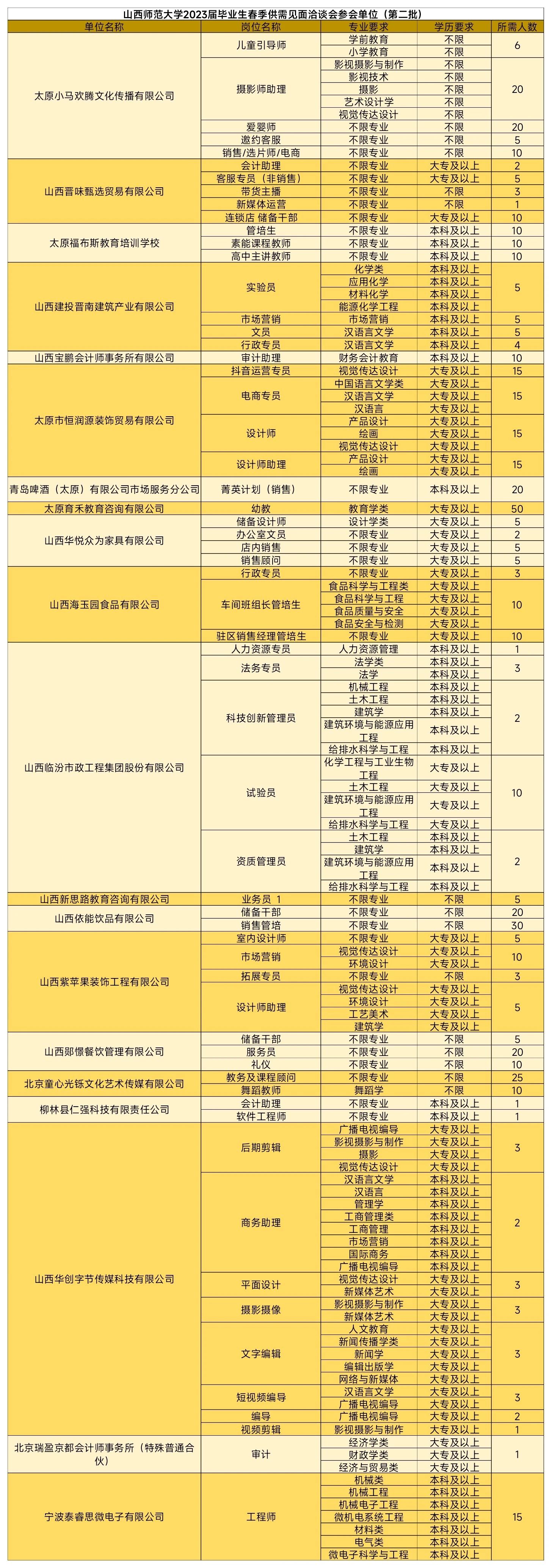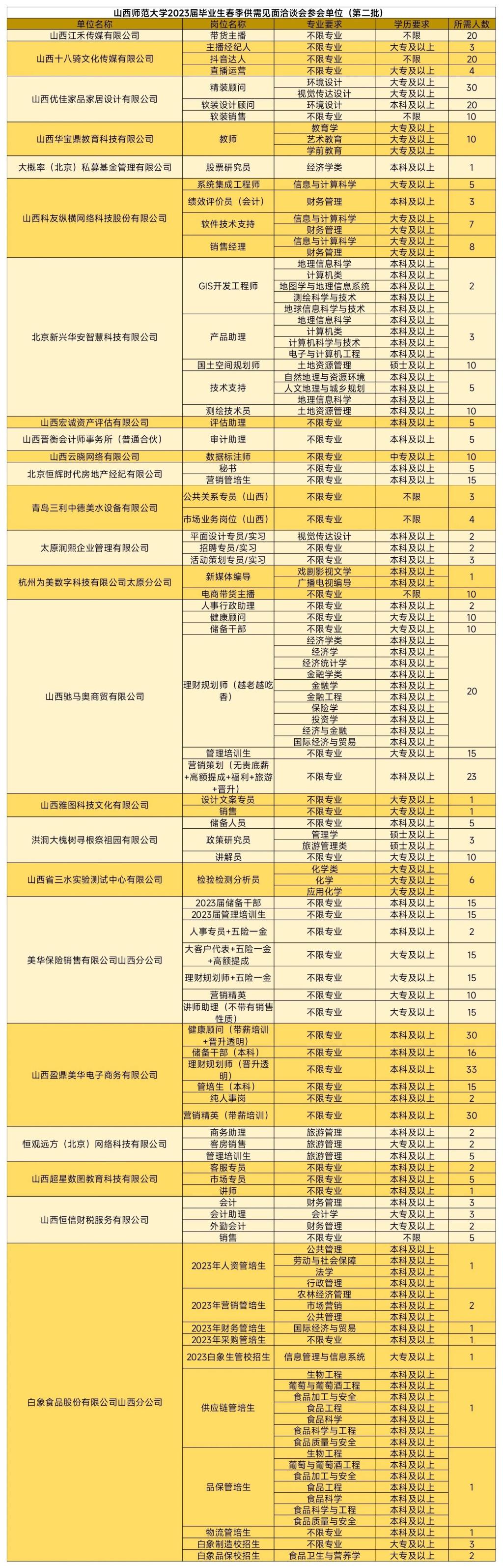 2023届毕业生春季供需见面洽谈会将于3月25日至26日举办,现将第二批参会单位及岗位需求公布如下,同学们如有兴趣可在线投递电子简历。