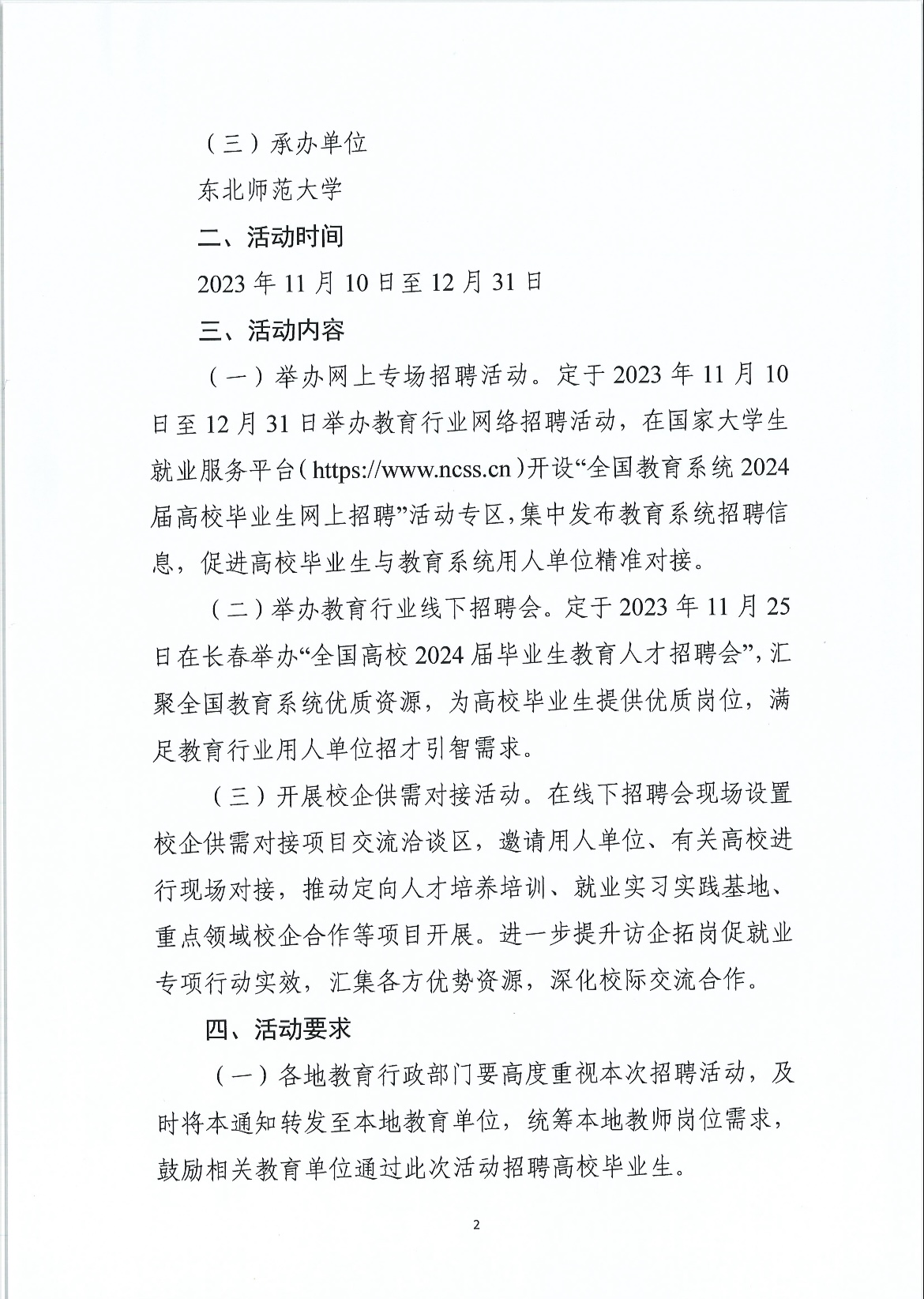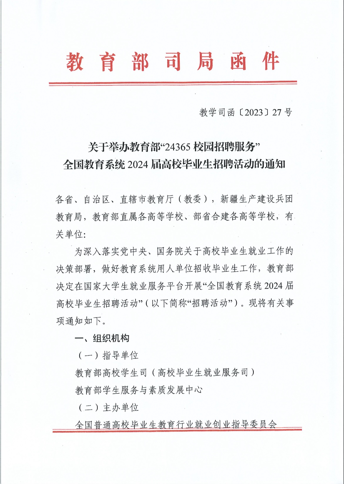 关于举办教育部:“24365 校园招聘服务”全国教育系统 2024 届高校毕业生招聘活动的通知