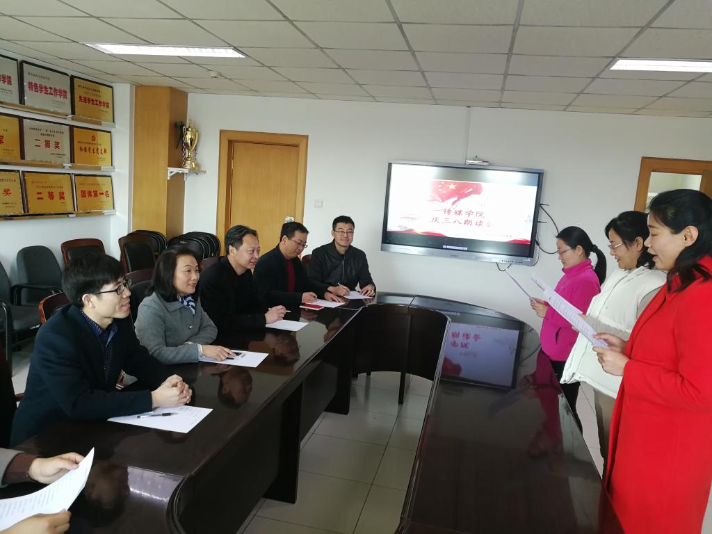 院长曹飞、工会主席王银、副院长汪存友也分别向女教职工送上了节日祝福、祝愿。参与活动的女教工们以多样的形式朗读了《党啊,我的母亲》、《歌颂十九大》、《母爱》、《写在妇女节的心里话》等诗歌散文作品,表达自己对党和国家的崇敬与热爱之情,不忘初心、牢记使命,传递社会正能量。社会的发展,时代的进步,每一段历史都留下了女性坚实的脚印。工作中,她们是不让须眉的巾帼;家庭里,她们是敬老携幼的好母亲、好妻子、好媳妇、好女儿;社会上,她们爱人之幼,扶人之老,用大爱温暖天地。