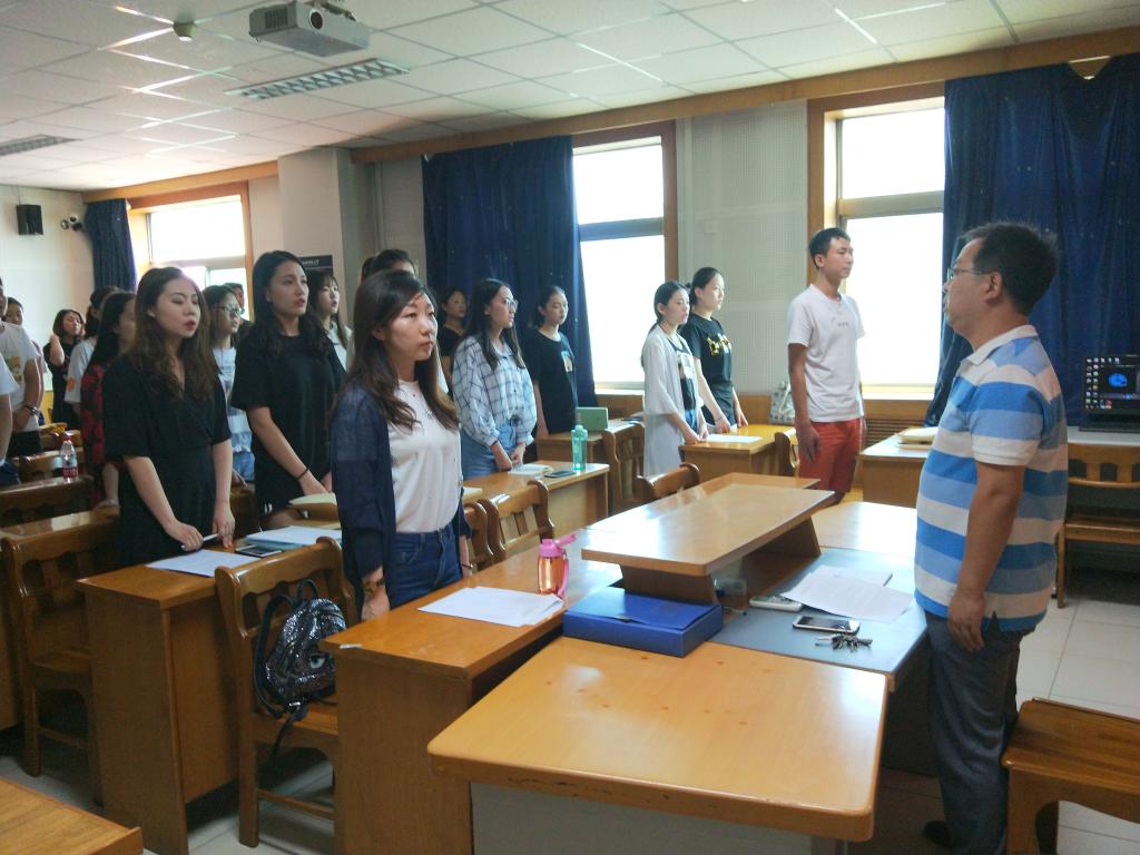 院党委副书记王银宣布入党宣誓仪式开始,大家全体起立,奏唱雄壮的国际歌,气氛庄严而肃穆。院团委书记、空中乘务学生党支部书记杨谨瑜同志宣布新发展的预备党员名单。传媒学生党支部党员代表阴宇航同志领读誓词宣誓。