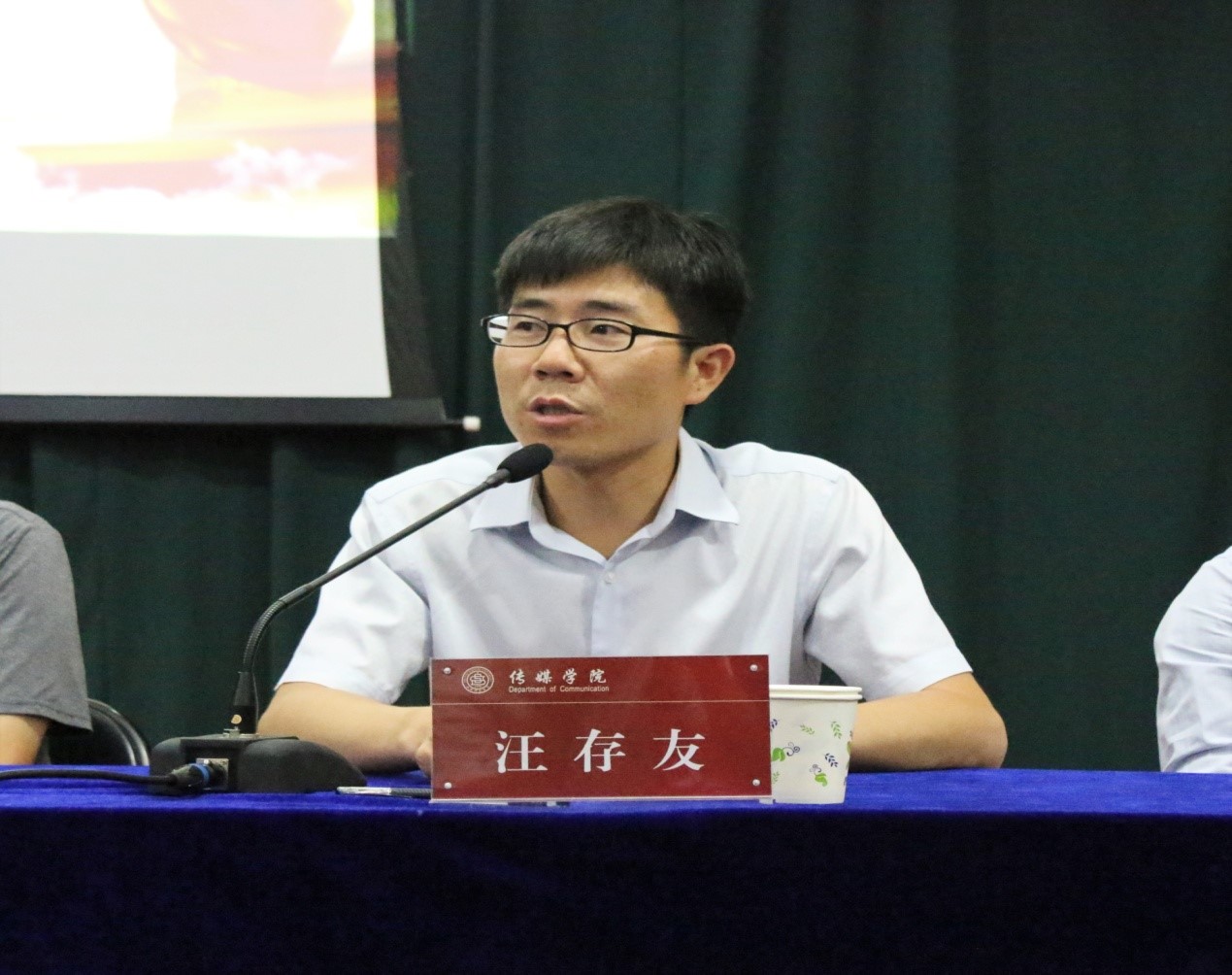 副院长汪存友介绍了广播电视编导、播音与主持艺术两个专业的课程开设及学分绩点情况,重点强调了各个专业的培养目标和就业趋势,希望同学们不断提高自己的实践能力和综合素质,努力做一名适应社会发展需要的复合型实用人才。