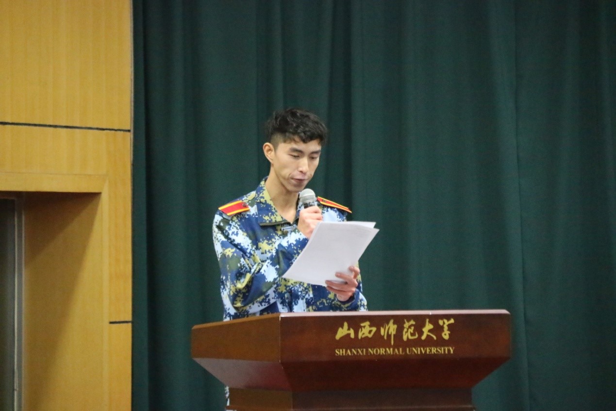 播音与主持艺术专业陈皓男同学代表新生发言。他向同学们分享了步入大学的感想,作为新时代新青年,要志存高远,胸怀远大理想,牢记习近平总书记对青年人的寄语。同时,要尊师肯学,持之以恒;严于律己,树立规范意识;尊敬师长,友爱同学,度过美好的大学校园生活。