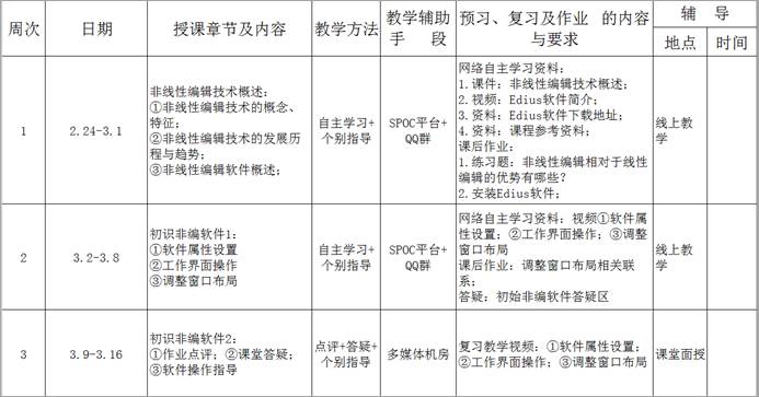 6.根据学校要求,每位教师应提供课程的详细教学方案,方案应注意将疫情期间的教学(暂按照2周安排)与正常开学后的教学计划衔接起来。具体的指导意见如下: