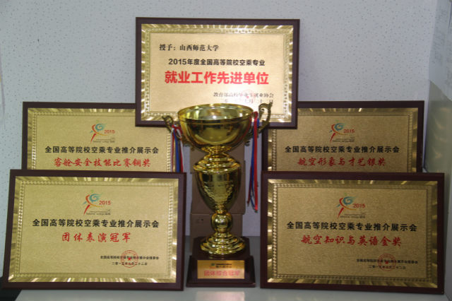 本次展示会既是高等院校的展示会也是空乘学子的就业推介会。据悉,有18家航空公司、机场地面、高铁、豪华游轮参加了此次推介会。我校共有146名同学参加现场应聘,其中103名同学被南方航空、厦门航空等录用为民航乘务员,20余名同学被北京首都机场、广州白云机场等单位录用为安检、值机、要客等,一次录用率达到84%以上。我校因此在大会举办的“2015服务民航,全国高等院校空乘专业人才培养与就业研讨会”上被评为“高校空乘专业毕业生就业工作先进单位”。