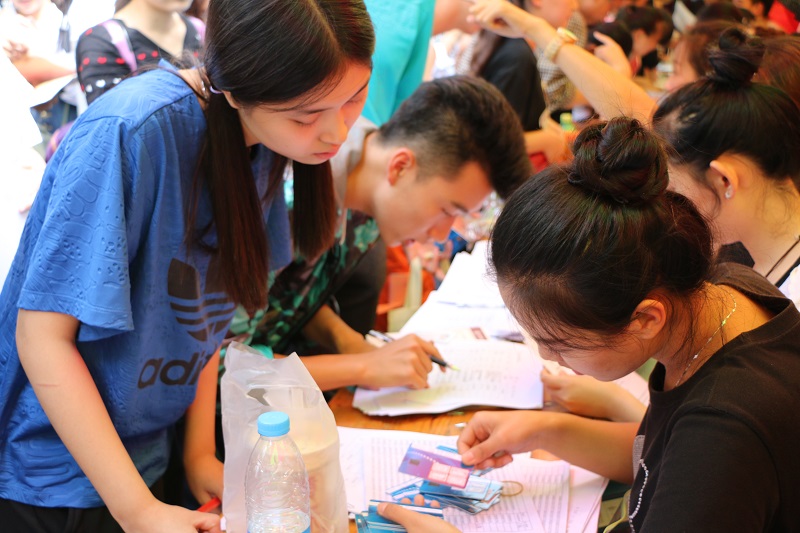 迎新的志愿者中为我院的学生会干部,大家以优质的服务去迎接新生,以耐心的言语与家长沟通。与此同时,志愿者们领着15级新生穿梭于报名登记,一卡通激活,领取军训服与床上用品等等新生办理入学手续必经的各个流程环节。每一个跑流程的老生们对每一个环节都进行详细的讲解,并提供一些有关学校的相关信息,在效率与质量两不误的情况下顺利帮助新生完成流程安排。在整个迎新工作中我们院的工作人员以及志愿者们保持一贯的严要求,高标准,努力做到热情,细致,周到,规范,有序,并赢得了新生及家长的一致好评,成功做到了迎新工作零失误的目标!