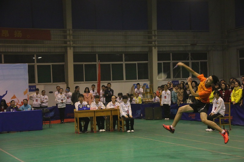晚19时比赛正式开始,面对实力强劲的对手,我院选手们并没有丝毫退缩。尽管在前三局中我院队员略处于下风,然而队员们愈挫愈勇,利用中场休息时间商讨战术,逐渐调整好状态,赛中拉吊突击、杀吊结合、抢救险球、发高远球,不断追赶着比分并在接下来的三局比赛中取胜。三比三的平局使最后一场比赛成为全场关注的焦点,老师教练及场边观众都为队员们呐喊助威。我院队员拼尽全力,为我院的荣誉而努力。但最终以微小的差距落后于对手,获得此次师生羽毛球联赛亚军的荣誉。