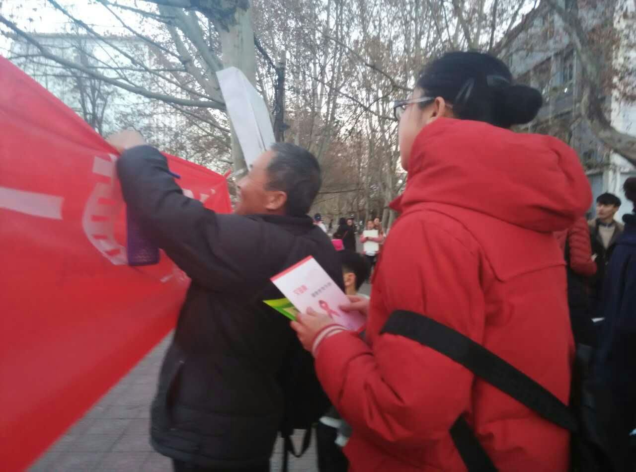 为进一步增强大学生艾滋病预防意识,宣传和普及艾滋病基本防治知识,12月1日下午,我院团委学生会各部门负责人及大一干事在师表路举行了“以爱防艾,予艾以爱”向零艾滋迈进的宣传教育活动。