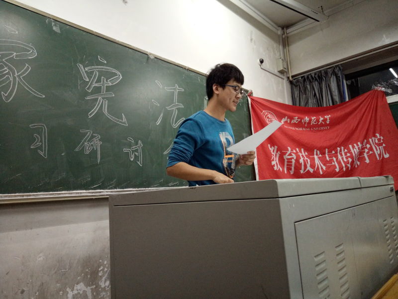 会上,学习部部长郝海军为大家介绍了“国家宪法日”以及《中华人民共和国宪法》的基本知识,组织大家学习交流,体会“宪法”对于一个国家的重要性,号召同学们遵法守法,做一个优秀的中国公民。