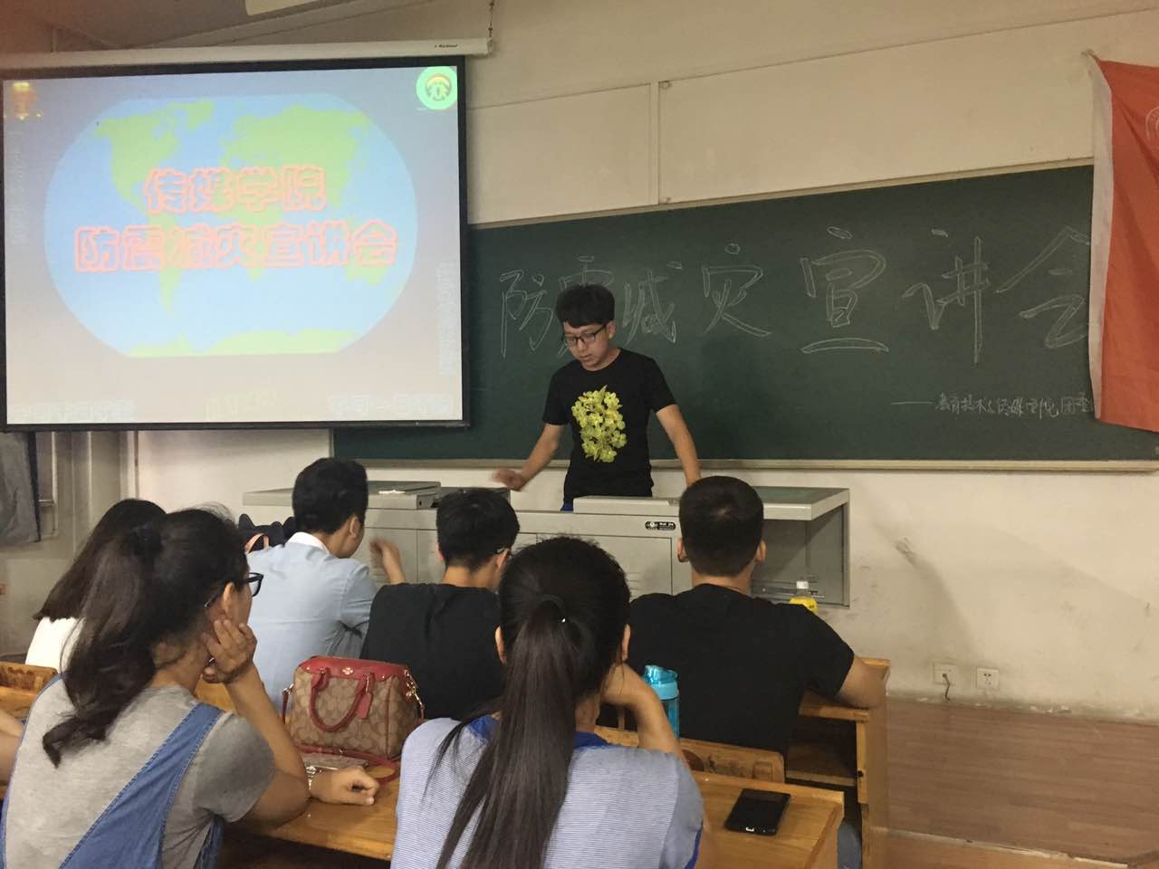 为提高同学们遇险自救能力,普及防震减灾知识,在5.12全国防灾减灾日来临之际,我院团委于5月11日晚在10216教室举办了防震减灾宣讲会,大一各班班委和入党积极分子参加了此次宣讲会。