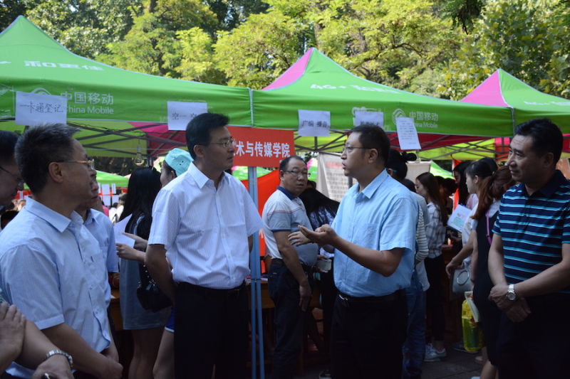 9月8日上午,校领导视察我院迎新工作,范晓东副书记向校领导详细汇报了我院今年的创新服务点。我院有序、周到、新颖的迎新举措受到了校领导的赞许。