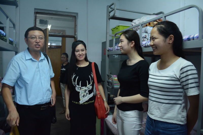 9月8日下午,我院党委副书记范晓东以及辅导员老师走进宿舍仔细查看了宿舍的住宿环境及宿舍各种设备,并强调用电安全、自身安全、财产安全。接着仔细询问了每一位同学的家庭情况、兴趣爱好以及对新环境的适应情况,告诉新生生活中如遇到困难要及时向辅导员反映,学院会全力解决。并叮嘱新生之间要加强交流,互相帮助,尽快适应大学生活环境,尽早对未来四年的大学生活做好规划。