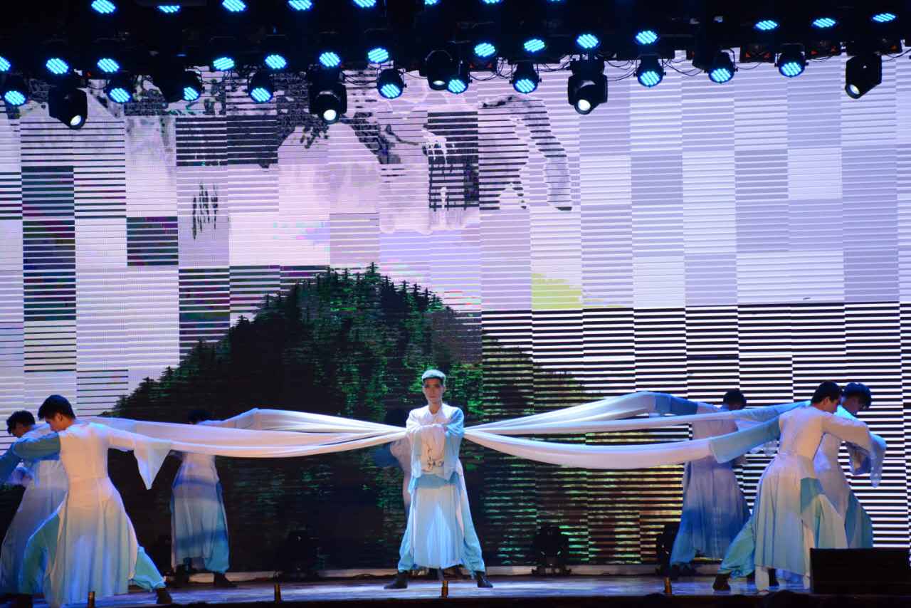 本次道德讲堂在融合了戏曲与水袖表演的舞蹈《百花争艳》中拉开帷幕,共分为“光影之真”、“音声之诚”、“云天之美”、“传媒之德”四个篇章。在第一篇章中,郝建国老师告诉我们,要想探索光影之真,首先要明白光影之源,而光影之源最重要的就是沟通,并且是面对面的沟通。并利用正反两面的对比揭示真实光影是社会道德的标尺。舞蹈《光之炫》将节奏与力量巧妙地融于表演中,情景舞剧《律动青春》展示了我院摄影摄像的技术水平。在“音声之诚”篇章中,白虹老师从传媒的起源、传媒的力量讲起,提出传媒人怎样传递中国的声音,传递什么样的声音。最后告诉我们,传媒人就是要不断创新,不断思考,传媒人就是要让世界听到中国的声音。舞蹈《声之韵》展现了原始部落最早对于声音的感知。在第三篇章中,赵琳老师带领观众回顾了航天事业的发展历程。指出云天之美凝聚生命之德,“灿烂星空”与“道德律令”在我们心中唤起的惊奇和敬畏是历久弥新的。飘逸空灵的舞蹈《天之魅》与优雅整齐的《蓝色奏鸣》给我们带来了属于云天的美感。在第四篇章“传媒之德”中,赵文国老师先用一系列数字证明了传播技术的发展,随后以记者偷拍姚贝娜捐献眼角膜的新闻为例,告诫我们,传媒人要有无限逼进真相的勇气,更要有温情,有敬意,有悲天悯人的情怀、俯仰天地的胸襟。最后,本次道德讲堂在歌曲《阳光路上》落下帷幕。