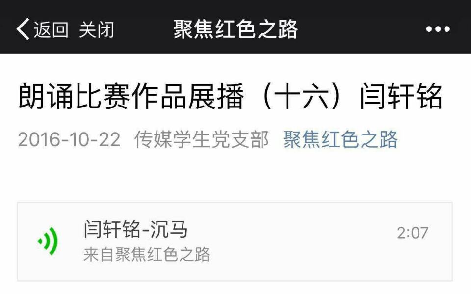 从9月29日至10月29日,为期一个月的时间中,传媒学生党支部“聚焦红色之路”公众平台共发布了十九位参赛选手的朗诵作品,引起了必发集团welcome欢迎光临全体师生的广泛关注,作品播放量已达上千次。