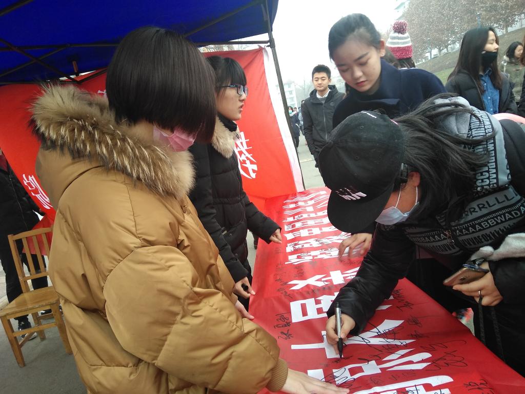 我院团委举办国家公祭日横幅签名活动