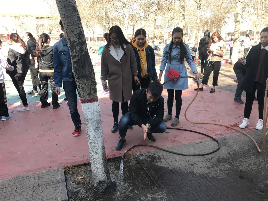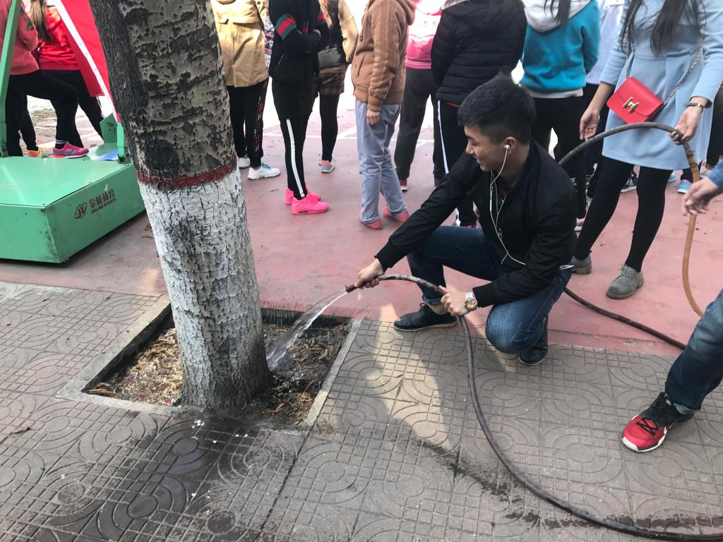 我院团委学生会于3月7日下午,组织学生会全体成员,为校园操场周边的树木进行浇水以及绿化保护活动。
