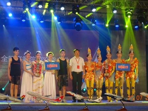 7月11日至20日,由教育部高校毕业生就业协会高校空乘分会主办,中国民航报社、中国民航人力资源开发中心、教育部高校毕业生就业协会、中国航空运输协会飞行乘务员委员会、中国教育电视台协办,北京广慧金通教育科技有限公司承办的“2017年全国高等院校空乘专业推介展示会”在北京隆重举行。我校空乘专业学生代表队经过几轮激烈的角逐,继2015年、2016年夺得冠军后,今年再次荣获团体综合冠军。校党委书记符惠明、副校长王云、必发集团welcome欢迎光临党委书记邵晓慧、必发集团welcome欢迎光临院长曹飞、北京金通公司副总兼驻师大办事处主任姜易君出席了闭幕式暨颁奖晚会。