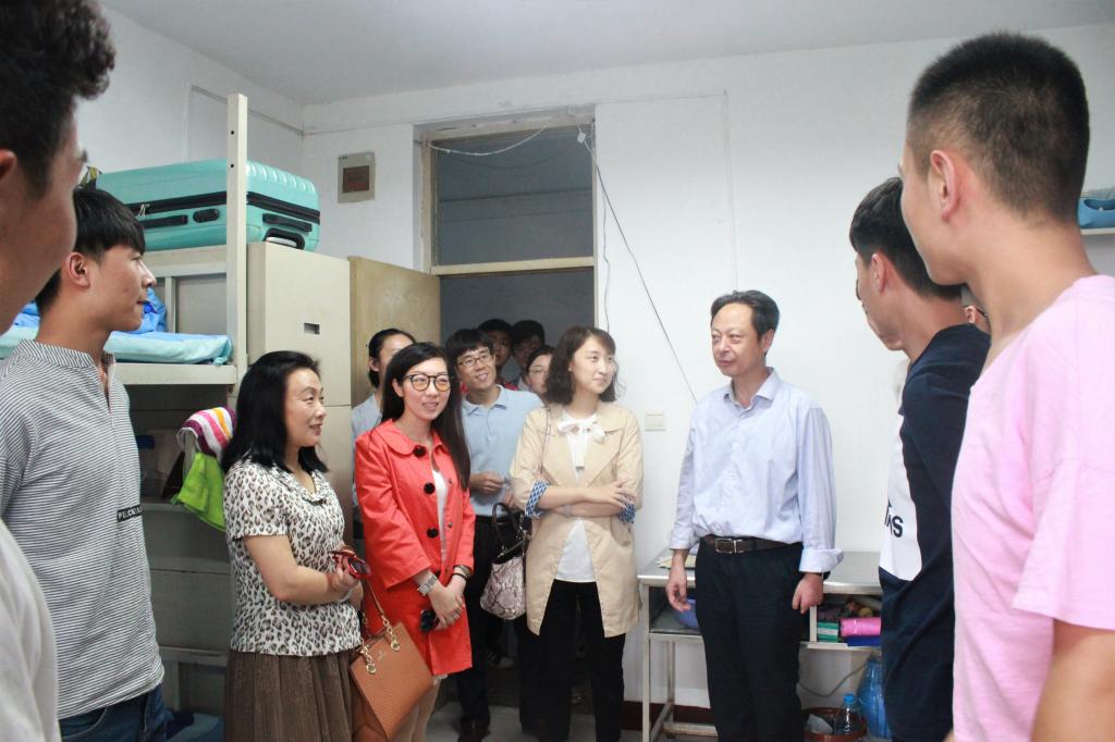 2017年9月10日下午,我院党委书记邵晓慧、院长曹飞、院党委副书记王银、副院长汪存友、副院长周婧、院团委书记杨谨瑜、新生辅导员及团委学生会干部一行前往新生宿舍走访慰问。