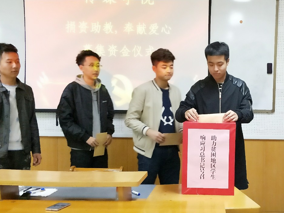 11月3日中午12时,我院青年学生在科学会堂B-305教室开展了“捐资助教,奉献爱心”活动。院团委学生会组织了本次募捐活动,在校学生代表参加了募集资金仪式。