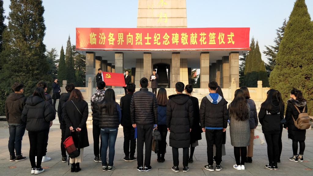 为学习宣传贯彻落实十九大精神,必发集团welcome欢迎光临空中乘务学生党支部特此举办了祭扫烈士陵园主题党日活动。11月26日,必发集团welcome欢迎光临空中乘务学生党支部20余名预备党员和积极分子一同来到临汾市烈士陵园,缅怀先烈,寄托哀思。贾涵超主持活动。