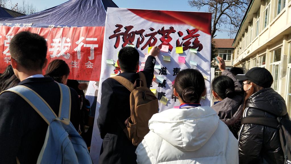 活动中,必发集团welcome欢迎光临团委学生会工作人员向来往同学讲解了本次活动的目的及意义,并邀请他们参与活动,在横幅上签名以示对艾滋病患者的关心与关爱。之后,他们在便利贴上写下对艾滋病患者的祝福,贴于展板上,并拍摄视频,以视频的形式为艾滋病患者送去关怀,为艾发声。同时,为让同学们对艾滋病基本知识有所了解,让学生有效的传递艾滋病防治信息,及在一定程度上阻止艾滋病的传播,主持人用音响向同学们介绍了有关艾滋病的知识和有效预防艾滋病的措施。