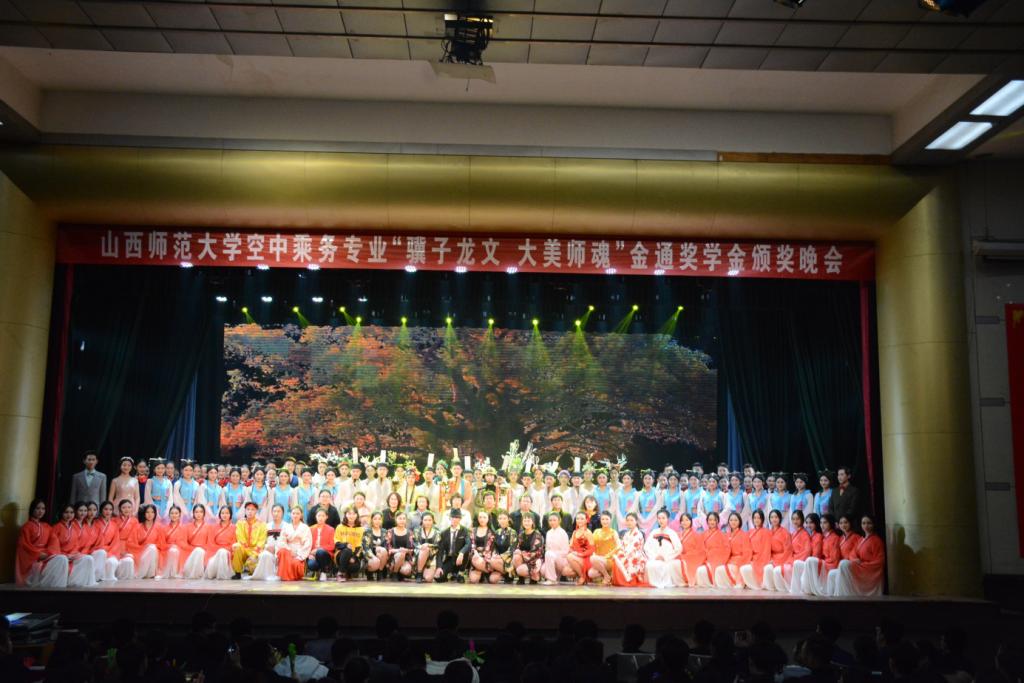 12月22日晚7:00,必发集团welcome欢迎光临在校文化艺术活动中心成功举办了“骥子龙文•大美师魂”第四届“金通奖学金”主题颁奖晚会。校党委副书记高峰,副校长王云,中国航空运输协会飞行乘务委员会主任、北京广慧金通教育科技有限公司总经理郝玉萍,北京广慧金通教育科技有限公司副总经理姜易君,必发集团welcome欢迎光临党委书记邵晓慧,副院长汪存友、周婧等领导出席晚会并为获奖学生颁奖。