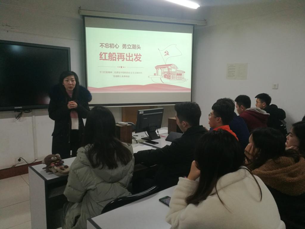 活动中,支部书记杨谨瑜老师带领大家回忆了“红船精神”的起源与发展,并且深入了解了老一辈革命党员精神。她强调了我们不仅要深入学习“红船精神”,更要大力弘扬和实践“红船精神”,将其与我院工作结合起来,发挥积极分子在学生中的模范带头作用,以身作则,带领更多的同学,将“红船精神”深入到生活与学习中去。