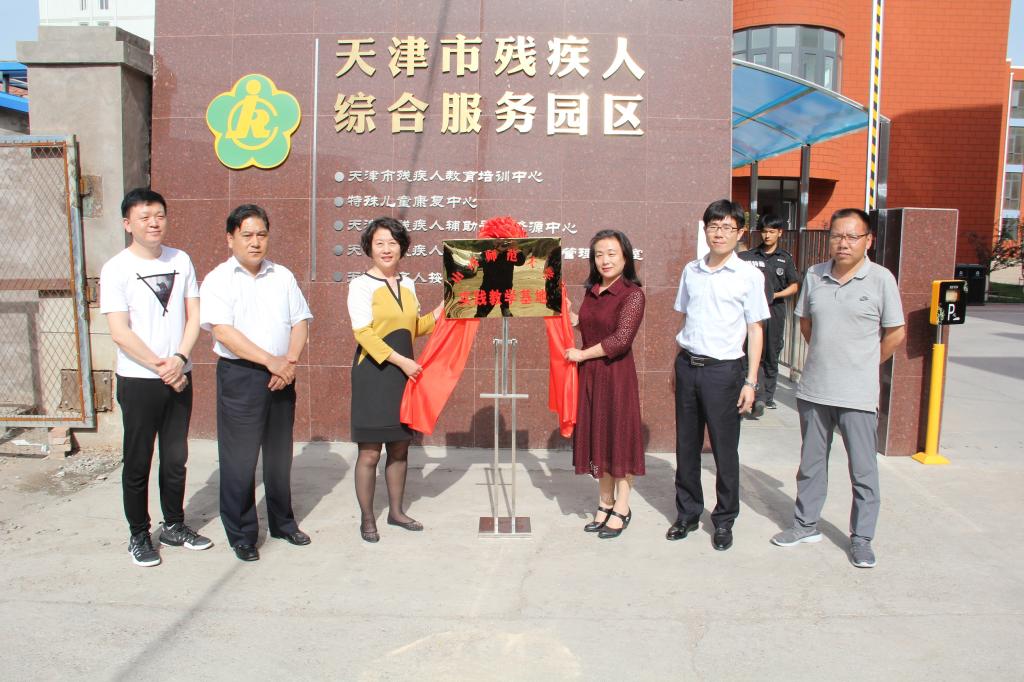 5月14日下午4时,我院与天津市残疾人教育培训中心合作建立实践教学基地揭牌仪式在天津市残疾人综合服务园区举行。院党委书记邵晓慧、副院长汪存友、马毅老师、部分实习生与天津市残疾人教育培训中心负责人出席揭牌仪式。