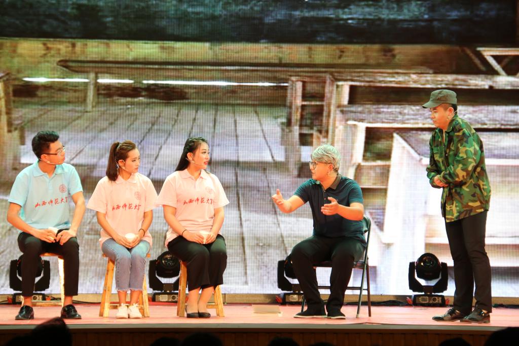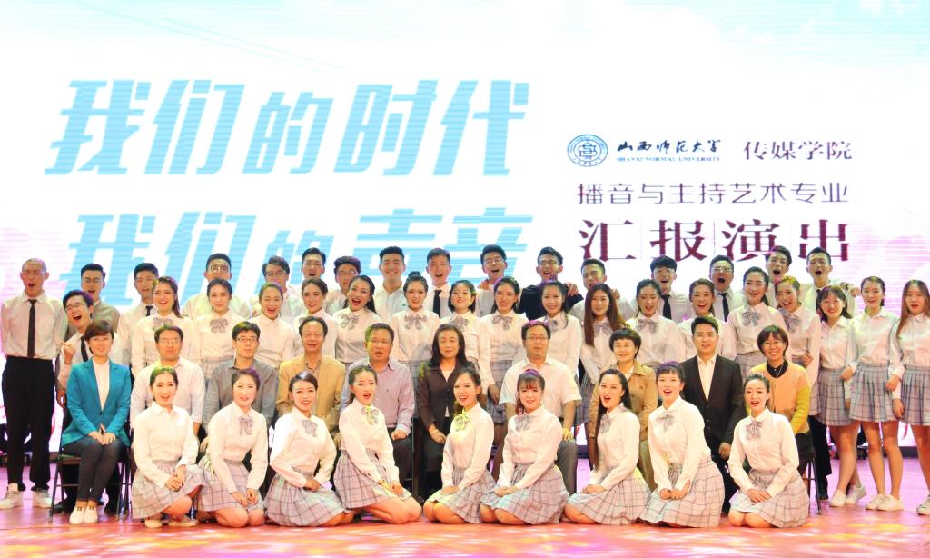 适逢贯彻落实党的十九大精神开局之年和我校即将迎来60年校庆,此次专业展演设置了“青春校园”、“献礼师大”、“时代之声”三个篇章。在第一篇章,播音与主持艺术专业的学生通过歌舞、朗诵、配音等节目展示了他们扎实的基本功和声音语言的魅力。在第二篇章,他们以师大学子的身份,通过“师大宝藏”等特别的节目带领大家回顾了师大60年的发展历史。特别是邀请到了84岁高龄的体育学院退休教师洪黛英老师、必发集团welcome欢迎光临院长曹飞教授、美术学院教师刘昂作为师大老、中、青三代教师代表上台分享了他们的从教和工作经历。他们对教师职业的热爱、对师大真挚的情感和对师大发展的坚定信心深深的感染了现场观众,数次引起热烈掌声和欢呼。在第三篇章最后,合诵《新时代、新青年、新征程》以磅礴气势歌颂了国家取得的伟大成就和习近平总书记带领党和人民绘就的实现中华民族伟大复兴的壮美蓝图。