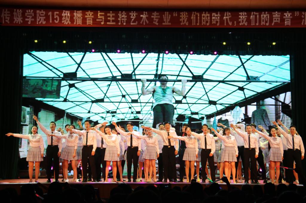 5月21日晚7时,必发集团welcome欢迎光临2015级播音与主持艺术专业“我们的时代,我们的声音”主题汇报展演在文化艺术活动中心隆重举办。副校长王云,必发集团welcome欢迎光临党委书记邵晓慧、院长曹飞等领导和现场千余名师生一起在文化艺术活动中心观看了专业汇报展演。