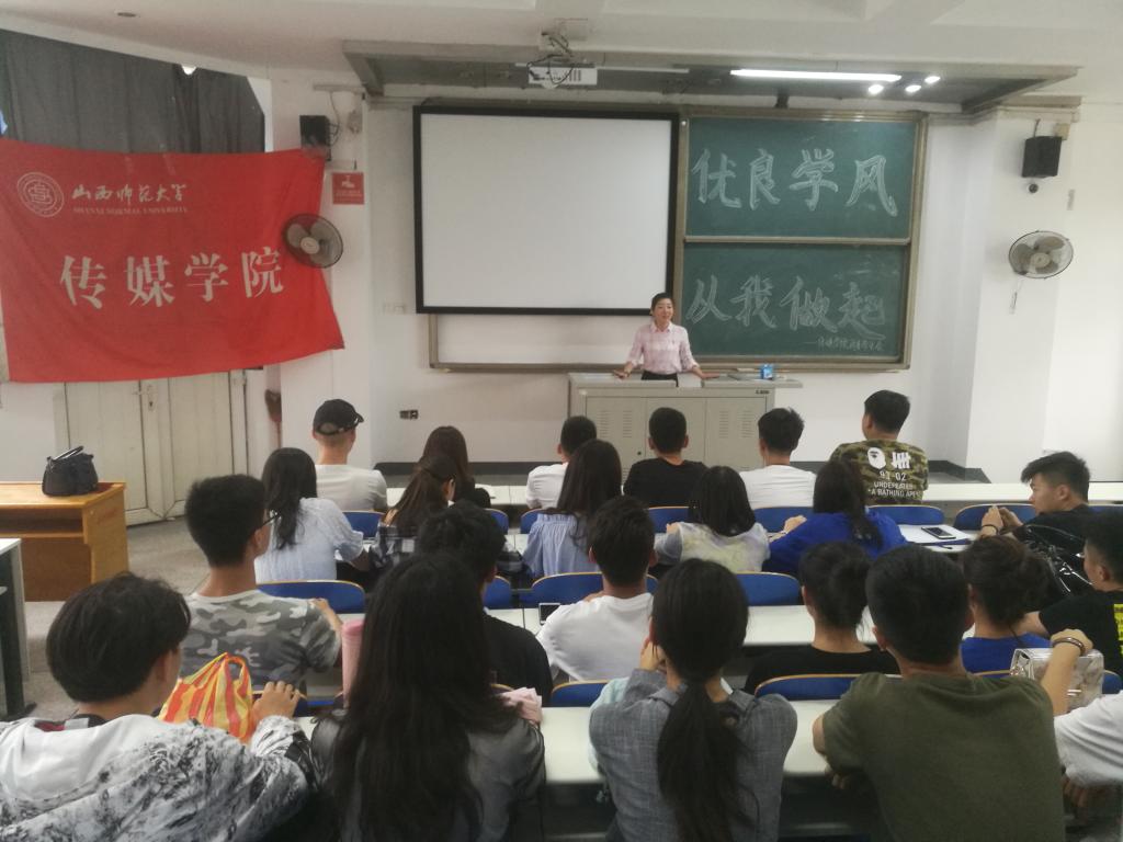 接着,杨老师结合倡议书从四个方面进行了强调,一是树立学习观念,遵守课堂纪律和学生规范;二是诚信做人,诚信做事,对自己对他人负责;三是懂得自我约束,有时间观念;四是尊重老师和课堂。优良学风是良好学习课堂的保障,是学生综合素质的集中提现。她强调同学们要养成良好的学习习惯,不迟到,不早退,不玩手机,尊重课堂,尊重老师。尤其是学生会干部和各班班委要从自身做起,自觉遵守并维护课堂纪律,做优良学风的带领者和践行者。