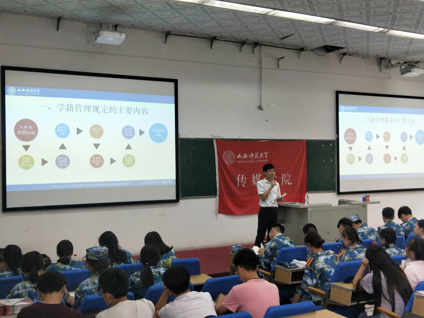 9月12日下午,我院在05203教室对2018级本科生进行集中入学教育,专题学习《山西师大学籍管理规定》。副院长汪存友进行主讲。