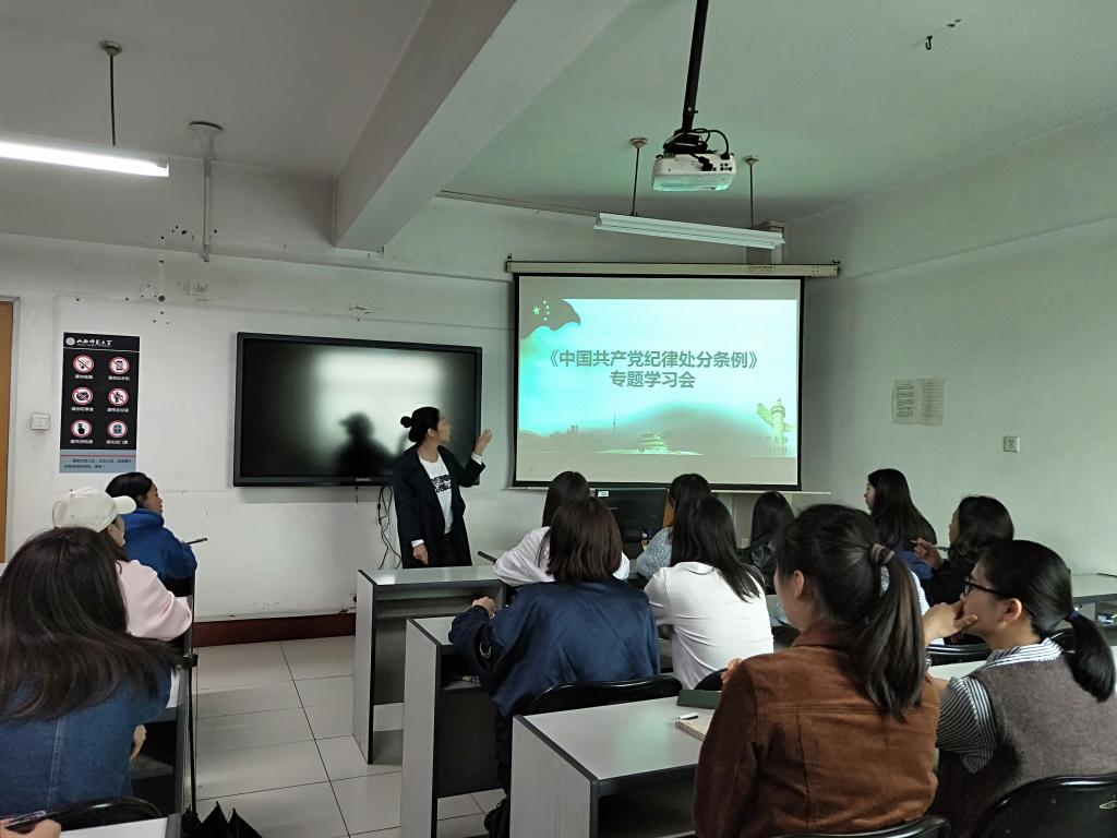 9月19日中午12时,必发集团welcome欢迎光临空中乘务学生党支部在科学会堂B-406教室学习新修订的《中国共产党纪律处分条例》。支部书记杨谨瑜老师、支部组织委员郭梁老师、宣传委员吕媛老师及全体学生党员及积极分子参加了此次专题学习会。会议由支部书记杨谨瑜老师主持。