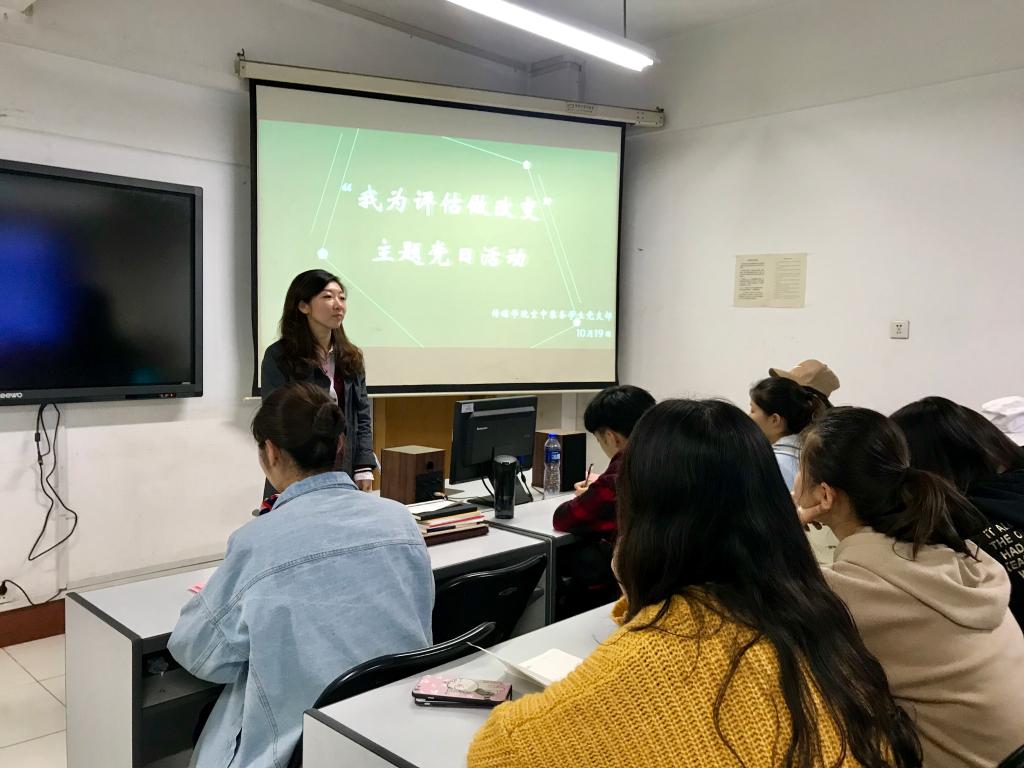 10月19日中午12时,必发集团welcome欢迎光临空中乘务党支部在科学会堂B-406教室开展“我为评估做改变”主题党日活动。党支部书记杨谨瑜老师及空中乘务党支部全体学生党员参加了此次活动,会议由党支部书记杨谨瑜老师主持。