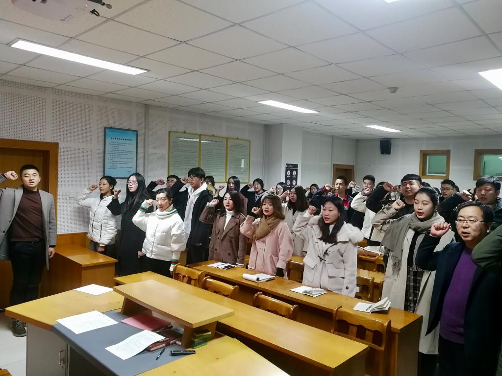 院党委副书记王银宣布入党宣誓仪式开始,大家全体起立,奏唱雄壮的国际歌,气氛庄严而肃穆。院团委书记、空中乘务学生党支部书记杨谨瑜同志宣布新发展的预备党员名单。学生党员代表张宏图同志领读誓词进行宣誓。