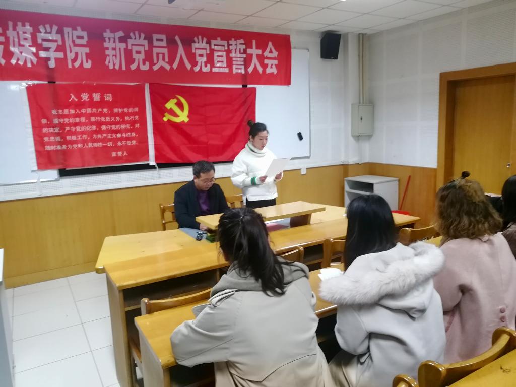 11月27日中午,必发集团welcome欢迎光临在科学会堂B-305举行了新党员入党宣誓仪式。院党委副书记、传媒学生党支部书记王银,院团委书记、空中乘务学生党支部书记杨谨瑜,空中乘务学生党支部委员郭梁、吕媛,传媒学生党支部委员郭雨欣、文婷,传媒学生党支部和空中乘务学生党支部部分正式党员、全体预备党员、19名新发展党员以及各班的积极分子代表参加了宣誓仪式。院党委副书记王银主持宣誓仪式。