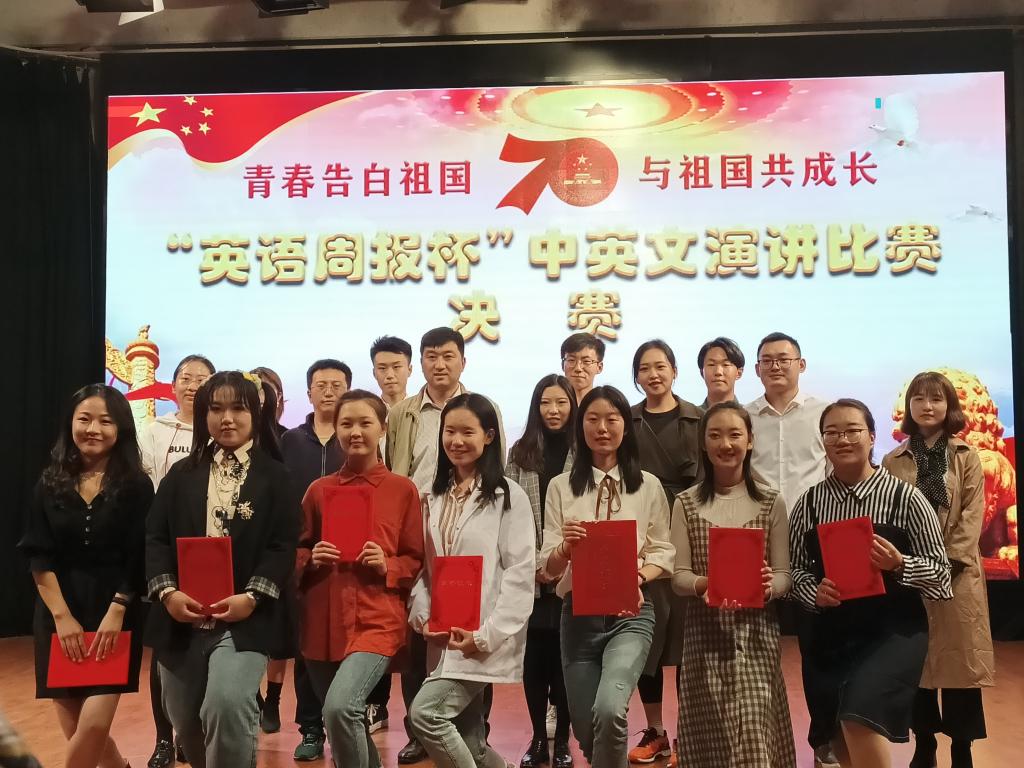 10月11日,第三届“英语周报杯”中文演讲比赛决赛在科学会堂一层演播厅落下帷幕,此次比赛由必发集团7790主办,英语周报社、教务处、校团委承办,必发集团welcome欢迎光临协办。院党委副书记高兵亲临现场观看比赛,大赛邀请了大连话剧团导演、编剧、现代文理学院教师肖晋、必发集团welcome欢迎光临教师郭梁、张雪、刘竞阳以及北京广慧金通教育科技有限公司驻我校工作处副主任王美玲老师担任评委。