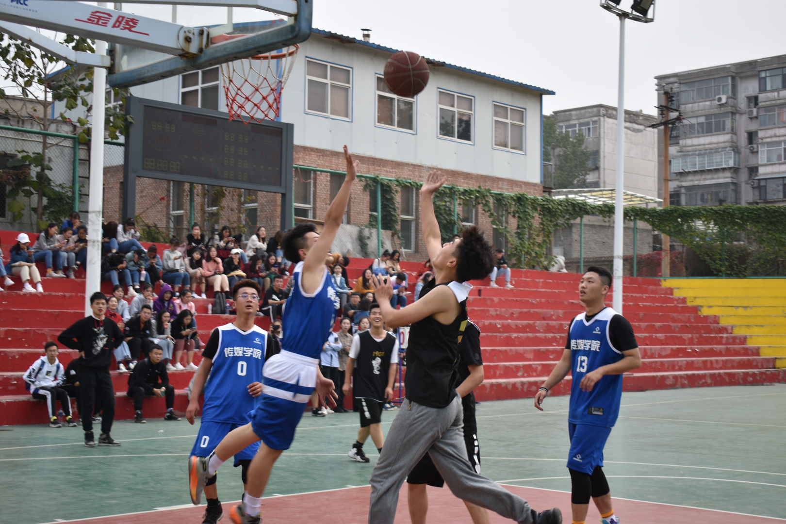 为了丰富大学生的课余生活,提高大学生的综合素质,增强团队精神和团体凝聚力,展现大学生进取向上的风貌,10月23日,我院迎新篮球赛决赛在灯光篮球场举行。我院大一播音一班对抗播音二班。
