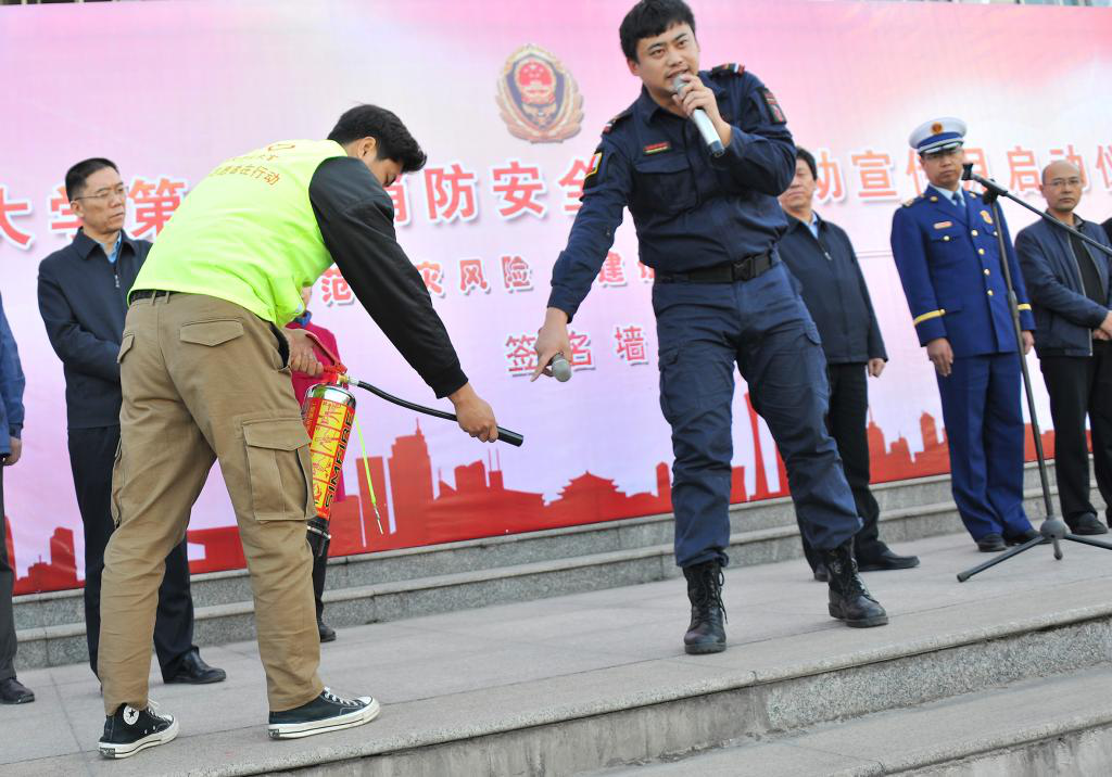 为进一步教育和引导广大师生积极参与消防、支持消防、重视消防、关注安全、珍爱生命。11月13日下午,我校在巨人广场举办了以“防范火灾风险、建设美好家园”为主题的第三届消防安全教育活动宣传月启动仪式,我院党委副书记高兵出席,200余名学生参加了此次活动。