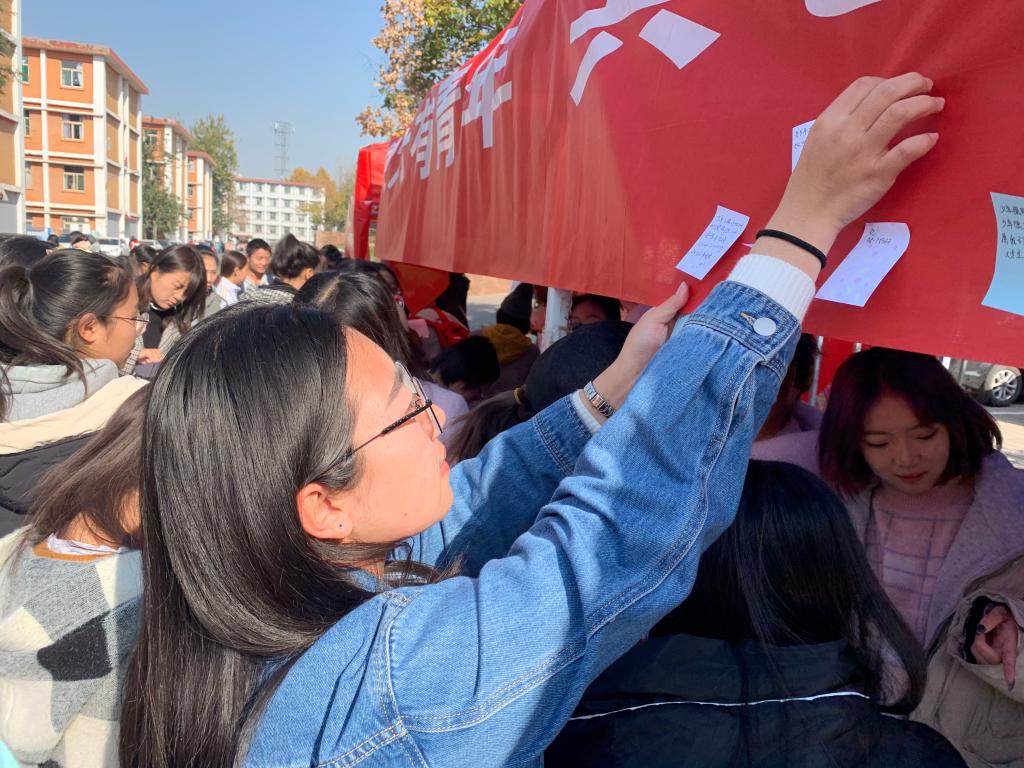 活动火热进行了1个多小时,其丰富多彩的展现形式吸引了过往的广大师生。首先,工作人员宣讲“国际大学生日”的由来,让同学们了解国际大学生节的来历与发展,同时倡议同学们展示自己的风采,呈现自己的实力。其次,工作人员向同学们讲述了优秀大学生的“奋斗史”,了解中国不同年代大学生的风采,同学们纷纷表示要以他们为榜样,努力成长成才,在今后的大学生涯中更好地展示自己的风采,表达对生活的热爱,对未来的向往。随后,进入现场答卷环节,同学们都攥紧了手中的笔认真答题,同学们各抒己见,描绘了自己眼中的大学生,大学生应该不断进取,勇于创新,为国家社会的建设奉献自己的一份力量。最后,大家把自己的心愿都贴在了横幅上,借此来激励自己,为自己的大学生活明确一个目标并为之努力,自由洒脱地呈现出自我的实力,反映出新一代大学生的魅力风采。