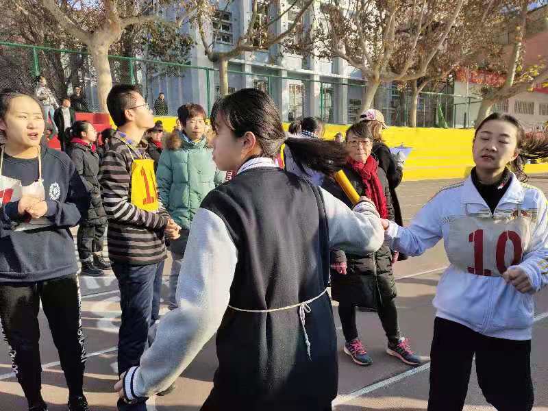 本次比赛分为两项,15×400接力赛和团体2000米长跑。上午进行15×400接力赛,天气带着寒冬腊月的独特气质,但激昂的旋律早已响彻操场。赛场上,我院运动员们努力奔跑着,寒冷的天气丝毫没有影响他们跑步的激情。当第十五个接力棒冲过终点,同学们都欢呼雀跃,空气中弥漫的冷与热相撞,参赛选手们留下了激动的泪水。跑道旁啦啦队的加油呐喊声此起彼伏,现场的气氛温暖了整个冬天。下午进行团体2000米长跑,我院院旗高高飘扬,由男女组成的混合编队阔步向前。这是一个十分考验团队协作能力的项目,跑步途中井然有序,整齐划一。我院工作人员耐心细致,认真记录着运动员们的圈数,在终点搀扶运动员,为运动员摘号码牌、倒水、帮运动员放松等,为运动员们提供全方位的后勤服务。