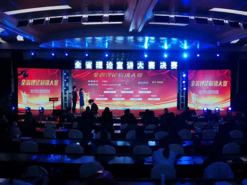 10月28日,全省理论宣讲大赛决赛在太原市煤炭交易中心举行,我院播音与主持艺术专业1701班学生、学校大学生理论宣讲团成员王晓晨同学以《马克思主义的真理力量》为题,讲述了马克思的思想贡献,以及以马克思主义为指导的中国特色社会主义道路的伟大实践,荣获一等奖。宣讲活动自8月开展以来,各县(市、区)和各单位初赛选拔、各市各工委宣传部推选86名选手参赛,经过淘汰,共50名选手入围复赛。经专家评选,优中选优,20名选手脱颖而出,参加现场决赛。