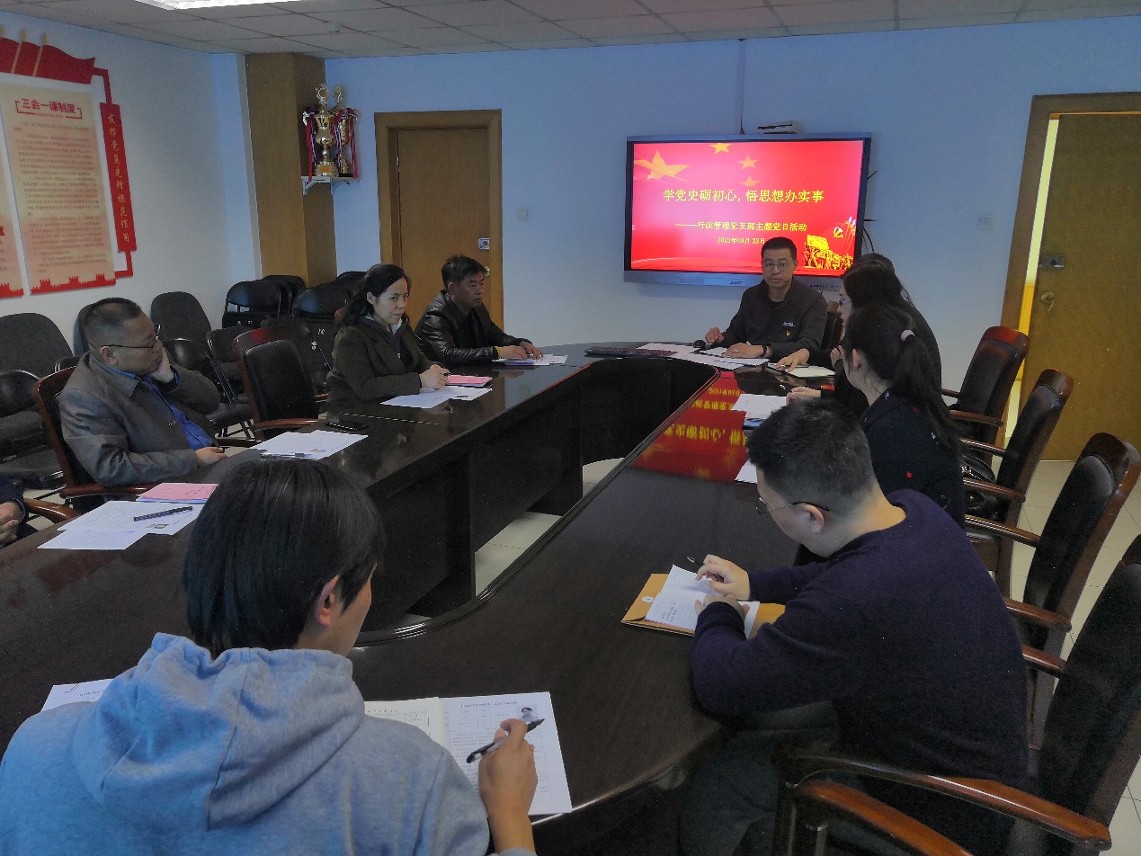 3月22日,必发集团welcome欢迎光临行政管理党支部全体党员在B503会议室召开了“学党史砺初心,悟思想办实事”主题党日活动。院党委书记靳晓涛同志、党委副书记任茹新同志,参加了此次党日活动,活动由支部书记赵军主持。