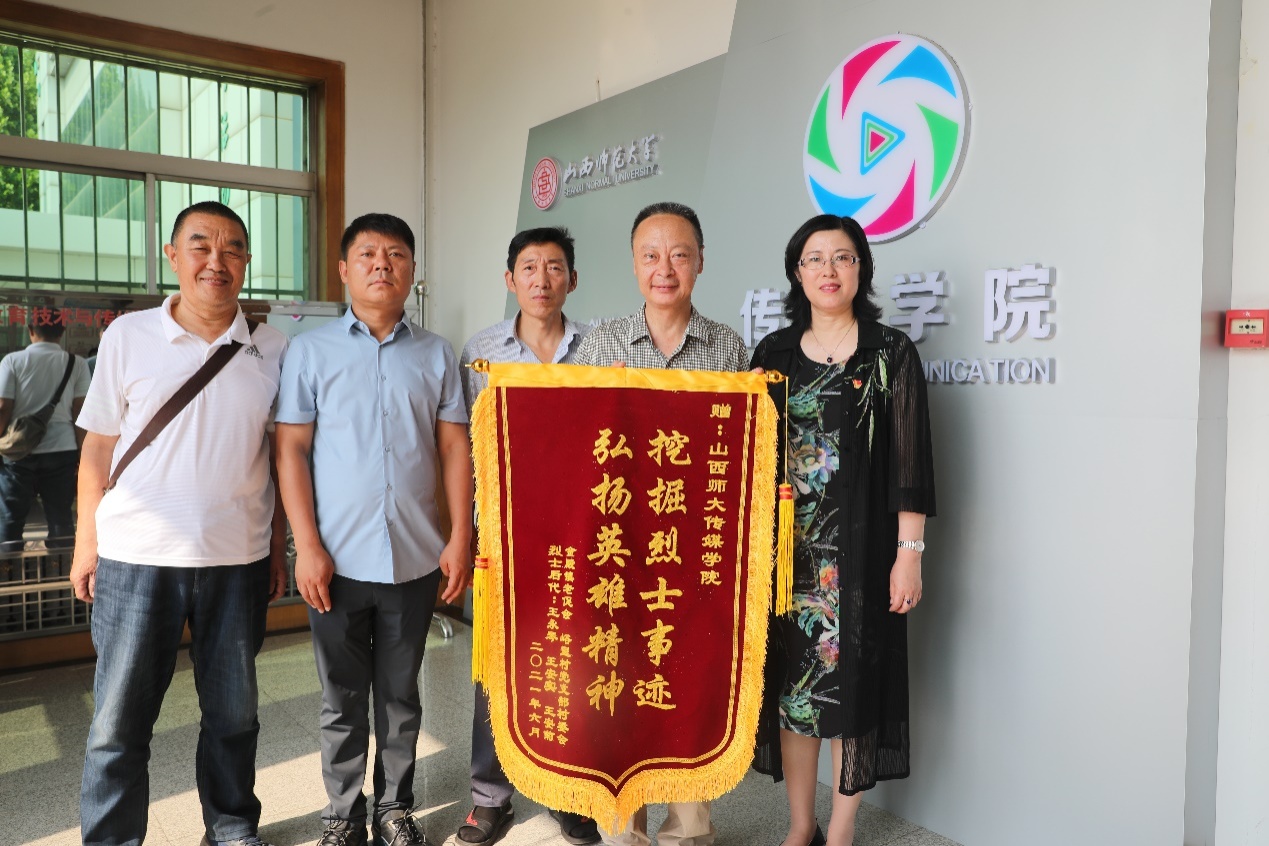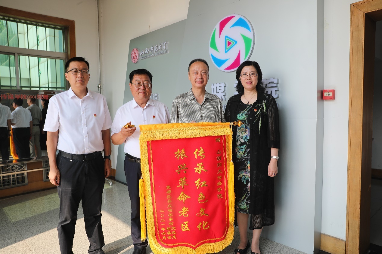 院党委书记靳晓涛、院长曹飞代表学院向县底镇苏寨村和金殿镇峪里村分别捐赠了《红色苏寨》、《烈血家国情》两部专题片的光盘,苏寨村、峪里村和烈士后代代表分别向学院赠送了锦旗。