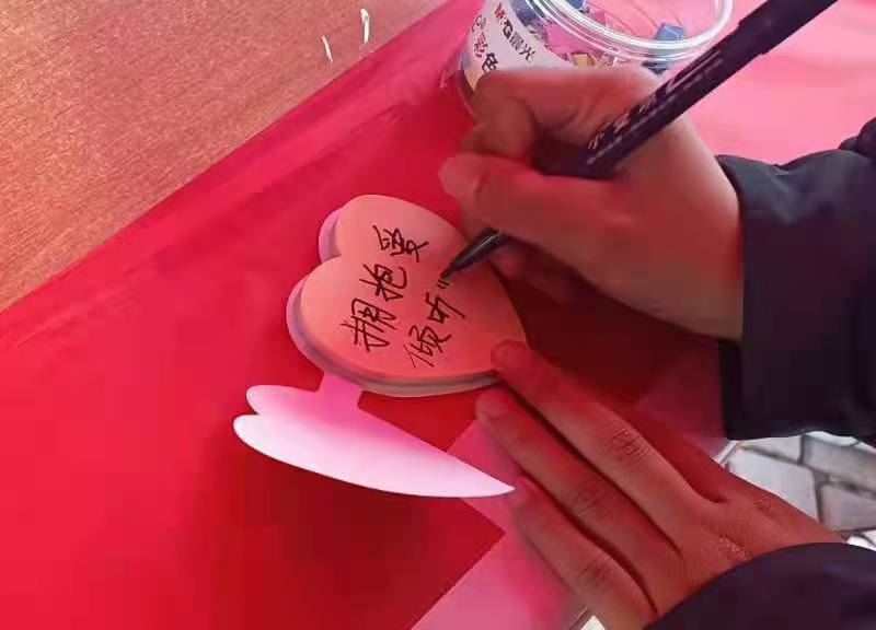 此次活动通过发放宣传手册、有奖问答等方式,向师生宣传了艾滋病的危害、如何预防艾滋病等知识,倡导对艾滋病病人的人文关怀。此次活动分为四个环节,一是“我对艾知多少”有奖竞答。参加活动的人员可以现场抽取试题回答,答对者有礼品赠送。二是“为艾发声”。同学们将自己对艾滋病人的爱与鼓励写在心愿便利贴,并粘贴在心愿墙上,以表达对艾滋病人的关怀。三是“与艾抱一抱”。参与活动的学生可以与装扮小熊拥抱,在拥抱中感受爱的力量。四是“网络知识竞赛”。各班分别下发二维码,进入全国艾滋病知识竞答和防艾知识学习。活动中,参与者在工作人员的引导下,积极有序地参加活动,在“心愿墙”上纷纷留下自己对艾滋病人的鼓励话语,并积极参加网上知识竞答和学习。在场的同学们纷纷表示,在日后的生活中要正确对待艾滋病患者,给予他们更多的爱与理解。