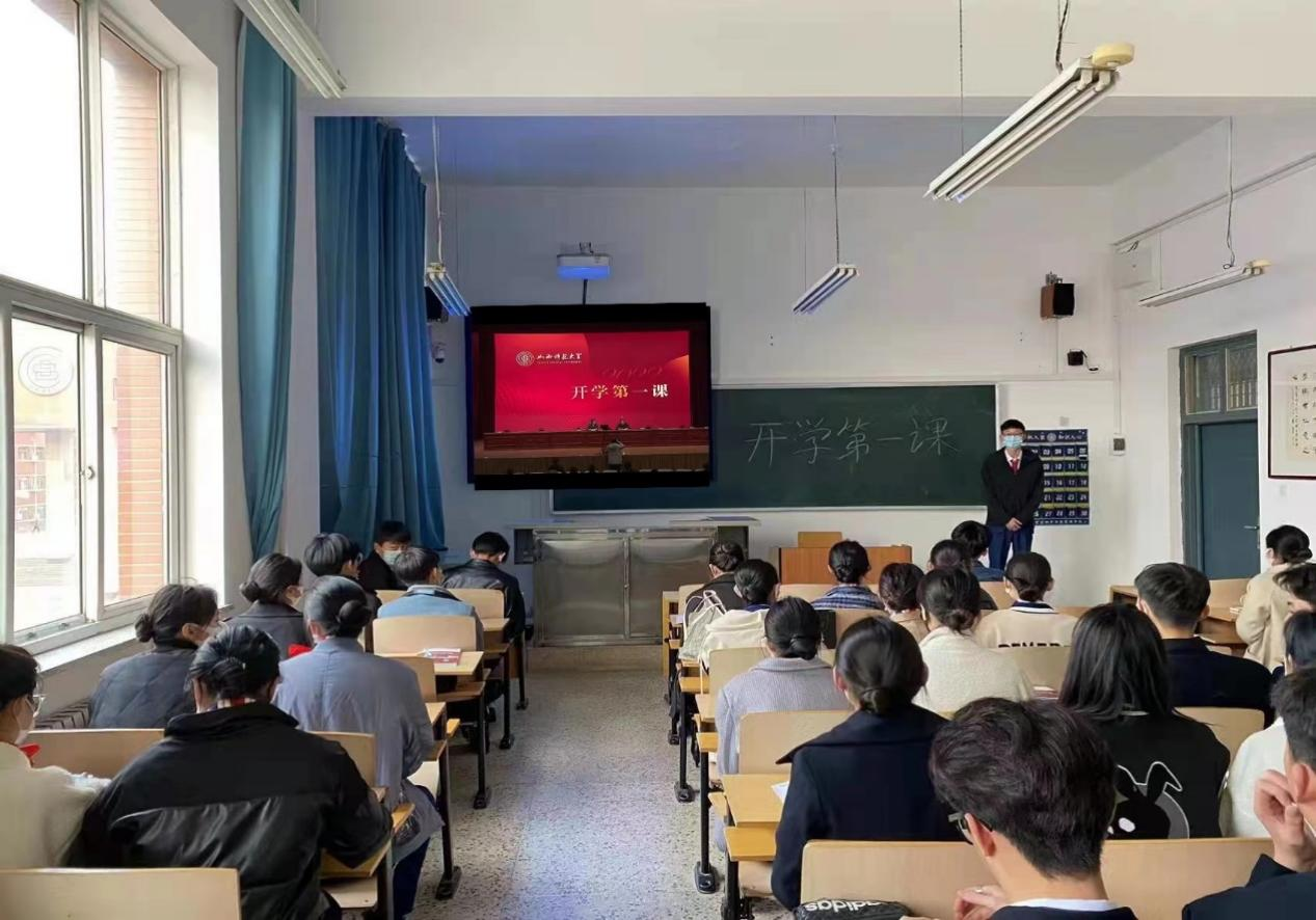 活动中,各团支部集中观看了张晓永书记讲授的“牢记领袖嘱托谱写发展新篇——学习习近平总书记考察调研山西重要指示精神”2022年春季学期“开学第一课”。张书记围绕学习贯彻习近平总书记考察调研山西重要指示精神,以大量生动具体的事例、视频资料带领全校师生深入学习习近平总书记实事求是、求真务实的工作作风,深刻感受党的领袖对老区人民的深切关怀和党中央对山西工作的高度重视,感悟党的创新理论的真理力量和实践力量,从更高更深的角度,进一步帮助大家了解国情省情,把握时代大势。张书记深入浅出、循循善诱,教导同学们应该在学好专业知识的同时,不断进行实践,充实自己,不忘初心、牢记使命,坚定文化自信,弘扬中华优秀传统文化。