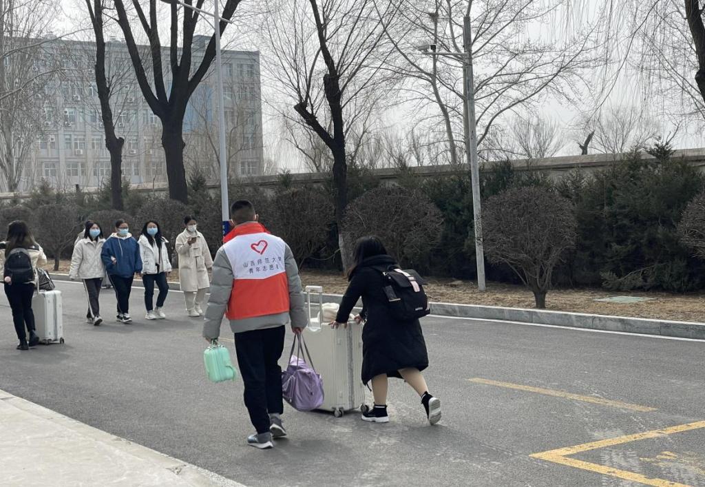 本次活动服务点分别设立在北校区北门、北区宿舍楼、南区东门、科学会堂。我院志愿者分为引导组和管理组,主要负责将同学们的物品从接送车上转移至宿舍楼下。此外,还有一批志愿者积极引导指挥家长车辆顺畅通行,确保学生能够安全有序进入学校。从清晨到日暮,我院志愿者们始终以勤恳认真的态度为每一个学生服务,他们奋战并坚守在各个点位,用爱心和担当守护学生返校的路。热情的笑脸,亲切的问候,贴心的服务,让同学们感受到了“家”的温暖。