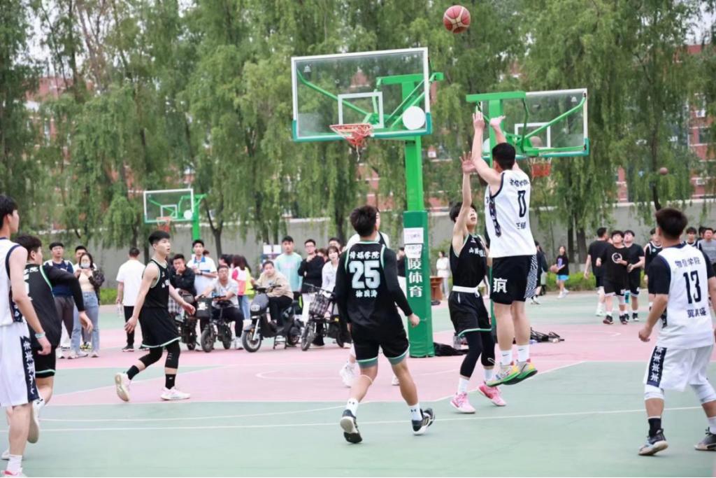 为深入学习宣传贯彻党的二十大精神,构建“五育并举”的育人体系,营造体育文化育人的文化氛围,培养学生积极向上的精神风貌,促进学生全面发展。5月9日-5月13日,我院男篮参加了学校篮球联赛,并成功晋级八强。院党委书记任茹新老师、副院长兼学工组长牛坚老师以及其他老师亲临现场进行观看指导,为我院学子加油助威。