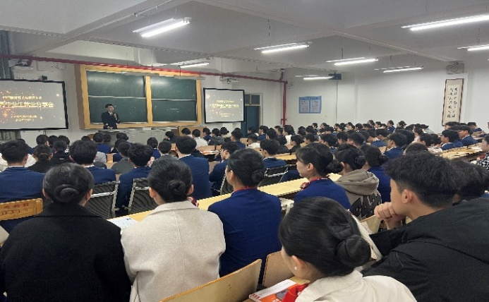 分享会由边佳欣老师主持会议,优秀毕业生代表李浩然作为受邀嘉宾同大家分享自己的就业感悟,21级全体学生参加。