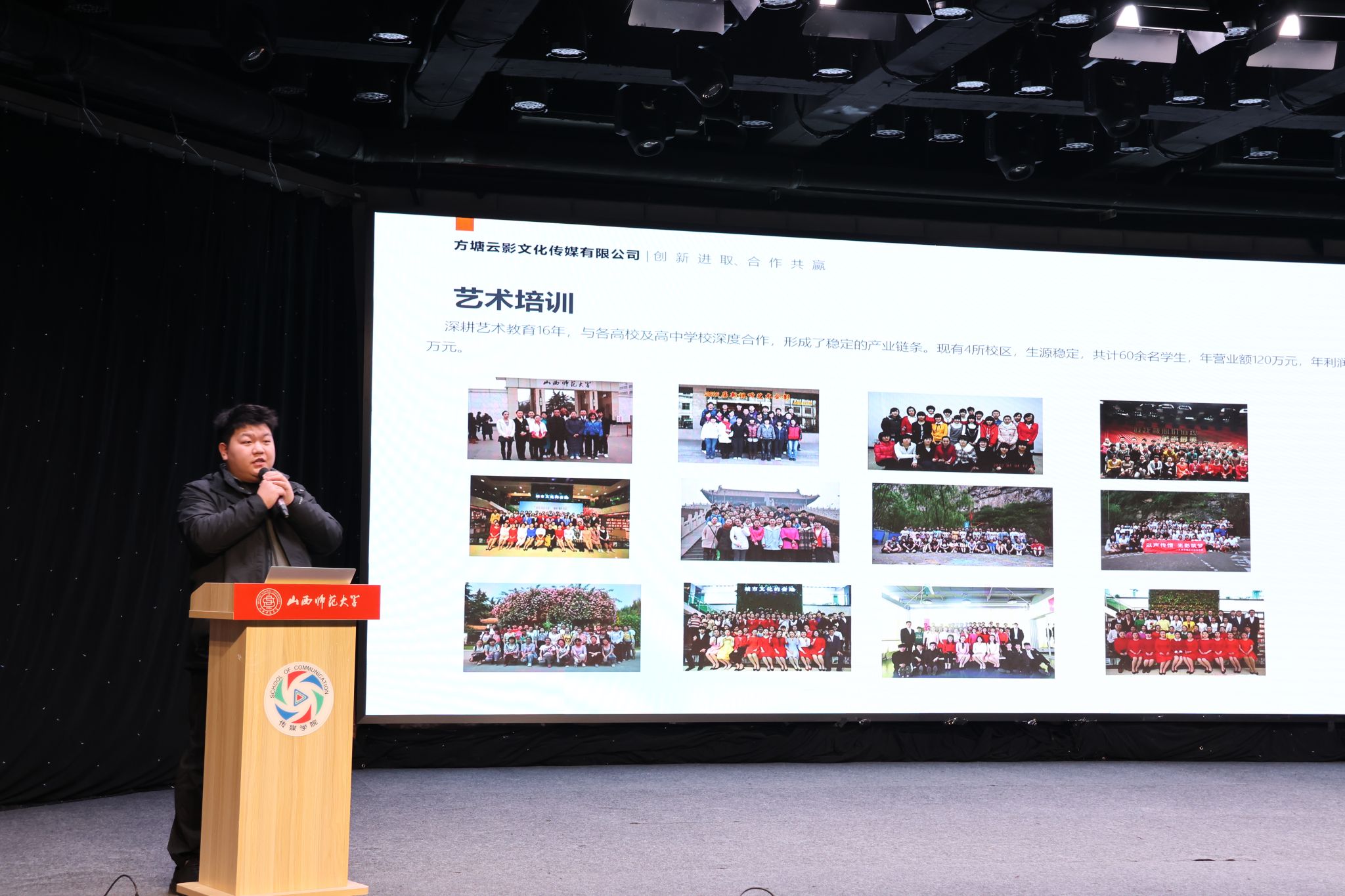 山西广播电视台市场运营中心副主任郭伟威、山西省安装集团股份有限公司BIM研究院李浩田部长、山西金葡萄供应链有限公司行政总监唐俊香、方塘云影(山西)文化传媒有限公司执行总监薛炀分别向同学们介绍了各自单位具体情况和实习工作要求。